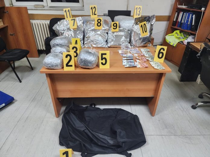 Ngarkesa e dyshuar ndodhej në dy çanta me 11 (njëmbëdhjetë) paketime në sasi prej 33.800 kg (tridhjetë e tre kg e tetëqind gram), substancë e dyshuar narkotike e llojit marihuanë. Lidhur me rastin është konsultuar prokurori kompetent dhe rasti i kompletuar së bashku me substancën e dyshuar i dorëzohet Drejtorisë per Hetimin e Trafikimit me Narkotik Prizren për trajtim të mëtutjeshëm” – ka njoftuar Policia.