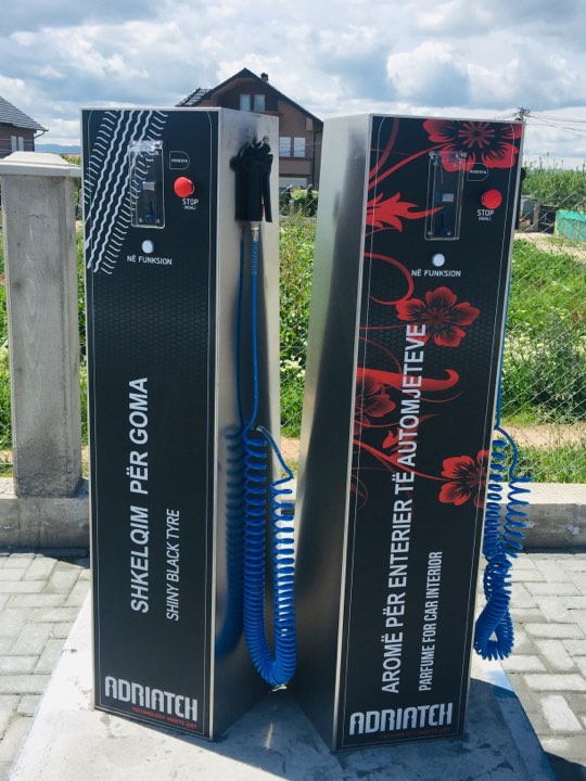 Larje e veturës me ujë të nxehtë, shkëlqim për goma, aromë për enterier të automjeteve, fshesë elektrike e të tjera.