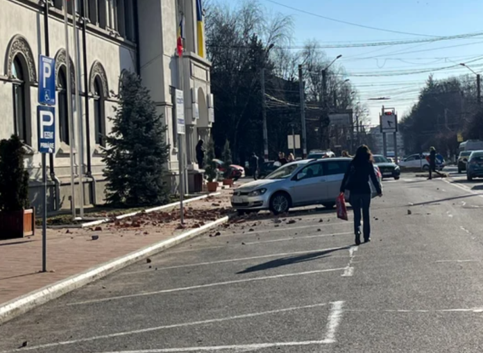 Ndërtesa e bashkisë në Târgu Jiu u dëmtua lehtë, pasi u shkëputën tullat dhe ranë në një zonë ku kishte disa vetura.