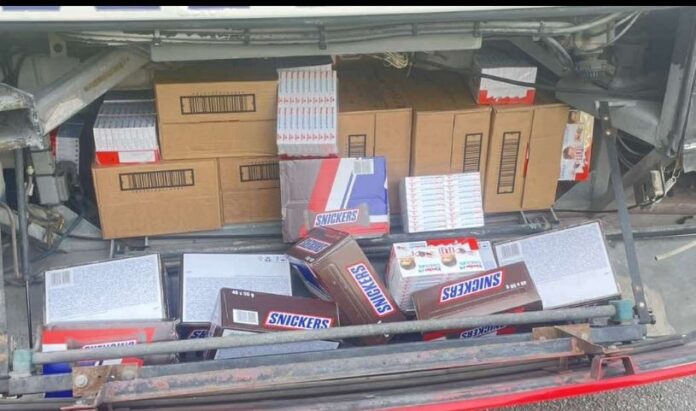 Gjatë kontrollit, në hapësira të modifikuara dhe të kamufluara brenda autobusit, është zbuluar një sasi e konsiderueshme mallrash të padeklaruara: