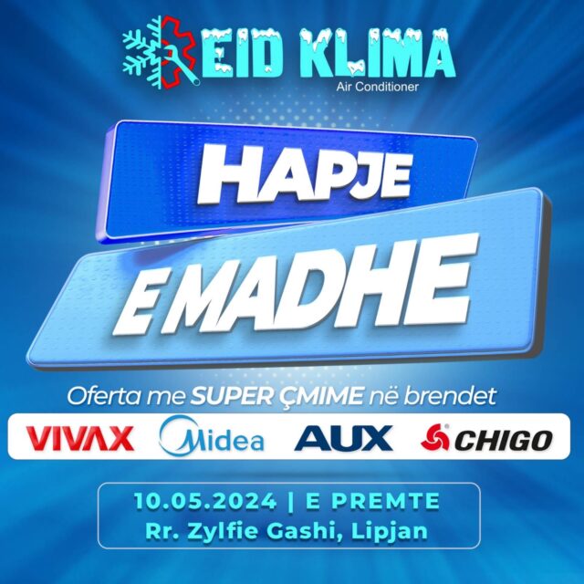 EID Klima në Lipjan hap dyert, Klima me super çmime PUBLIKUAR 09/05/2024 LipjaniNews.com Nga nesër mund të paiseni me Klima të ndryshme nga EID Klima në Lipjan. EID Klima mund ta gjeni me lokacion në Lipjan në Rr.Zylfije Gashi për ti marr ofertat e fundit me super qmime. EID Klima Lipjan 045 487 917 044 350 161 SHIKO MË SHUMË LIPJANI Therje me thikë në Lipjan Policia Kosovës ka njoftuar se është raportuar se viktima mashkull kosovar, ishte rrahur nga... 25/04/2026 LIPJANI Pesëvjeçari nga Lipjani në gjendje stabile, lirohet nga QKUK, merret nga QPS në Gjakovë Fëmija pesëvjeçar nga Janjeva e Lipjanit, i cili u keqtrajtua nga prindërit e tij,... 16/04/2026 LIPJANI Vdes Drejtori i HANDIKOS Lipjan Afrim Mena Kryetari Komunës ka ngushëlluar familjen Mena me rastin e ndarjes nga jeta të Drejtorit... 13/04/2026