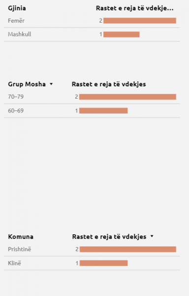 Gjatë kësaj kohe viktima të COVID-19 janë dy gra dhe një burrë.