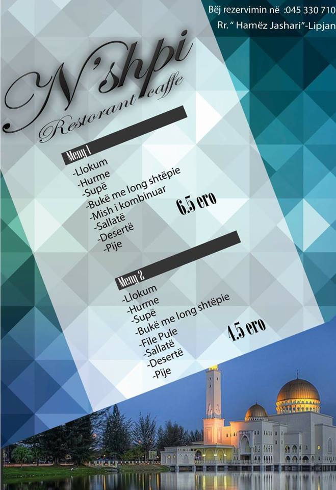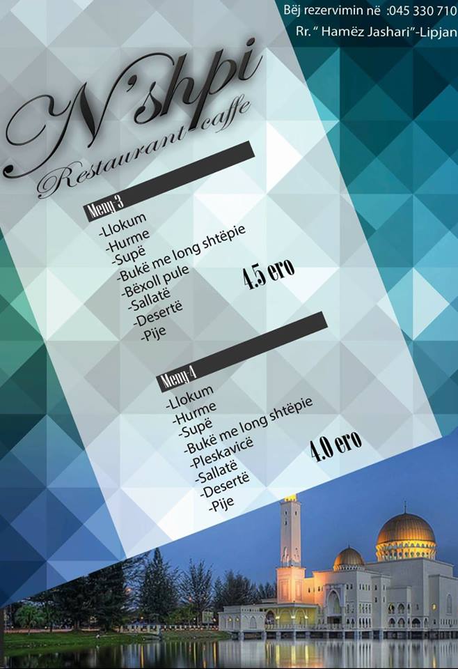 N’Shpi Restaurant-caffe në Lipjan, ka ofertën speciale për muajin e shejtë të Ramazanit.