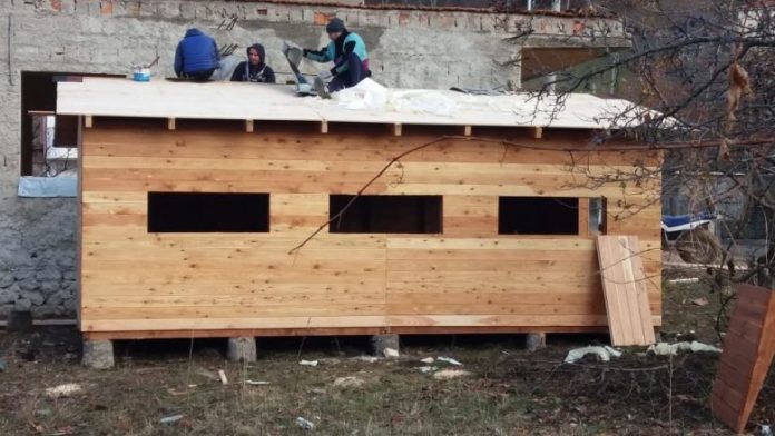 Punonjësit e Agjencisë Kombëtare të Zonave të Mbrojtura, Elbasan po vazhdojnë punimet për këtë qendër të re vizitorësh.
