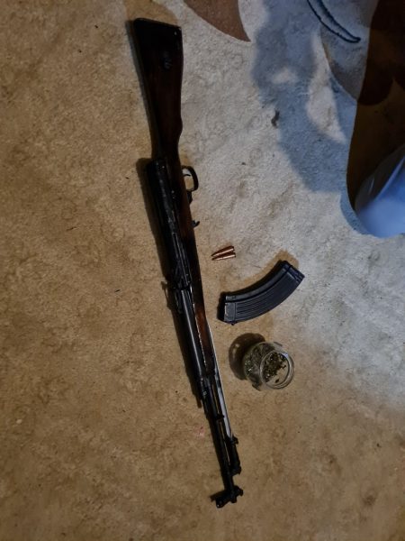 Gjatë kontrollit në njërin prej lokacioneve, hetuesit kanë gjetur një pushkë automatike, dy fishekë, një radio për komunikim ,,Motorola”, sasi të substancave narkotike si dhe katër aparate për kriptovaluta.  Të gjitha gjësendet e gjetura janë konfiskuar në cilësi të provave materiale. Në lidhje me provat materiale, në cilësi të personit të dyshuar është duke u intervistuar një person mashkull kosovar.