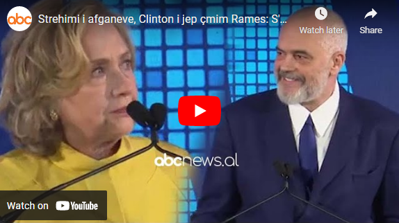 “Kryeministri Rama hapi dyert e Shqipërisë për njerëzit nga Afganistani falë udhëheqjes së tij më shumë se 1000 afganë të evakuuar janë të sigurt në Shqipëri. Kur e mora në telefon për ta falenderuar ai u përgjigj shumë natyrshëm që çfarë tjetër mund të kishim bërë. Rama shënoi një rekord historik duke emëruar një numër të lartë grash në qeverinë e tij. Disa prej tyre janë këtu këtë mbrëmje. Ai vazhdon ta vendosë barazinë gjinore në axhendën e tij. Kam nderin t’i jap çmimin e pionerit Global kryeministrit Edi Rama”, tha Clinton.