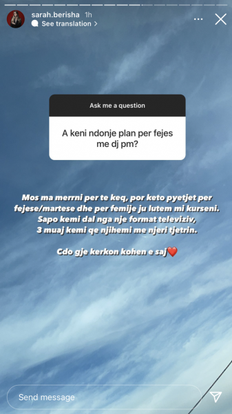 Së fundmi, në një bisedë virtuale me ndjekësit, një prej tyre e ka pyetur blogeren nëse ka ndonjë plan për fejesë me PM.