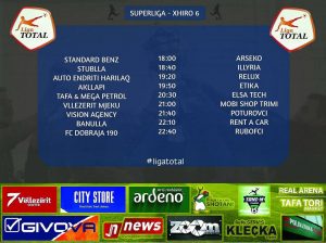 Sot ne mbremje xhiroja e 6-te ne SuperLige PUBLIKUAR 28/03/2018 LipjaniNews.com Ne Toni Stadium sonte zhvillohen ndeshjet e javes se 6-te te SuperLiges.Do kete ballafaqime interesante ne fushen sportive Toni mes skuadrave te elites se futbollit lipjanas. Orari i plote i takimeve eshte ky. SHIKO MË SHUMË Liga Total Lipjan Favoritet kërkojn fitore.Neser xhiro 4-të në Liga Total Lipjan Neser zhvillohet xhiroja e 4-te ne Liga Total Lipjan ne SuperLige. Ne plan per diten... 06/04/2019 Liga Total Lipjan Ndeshje te madha ne Champions League Pritet qe ne qerekfinalet e Champions League Kosova te kete vertete duele titane ku... 09/03/2019 Liga Total Lipjan LIGA TOTAL kompleton skuadrat në kohë rekorde.Nis sezoni ri me 17 mars Dardan Saraçi organizator i LIGA TOTAL LIPJAN se bashku me stafin e kesaj lige... 06/03/2019