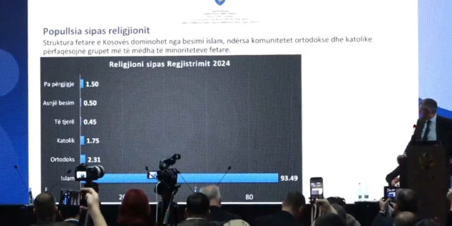 Agjencia e Statistikave të Republikës së Kosovës sot ka prezantuar të dhënat përfundimtare sa i përket regjistrimit të popullësisë. Në prezantimin e të dhënave nga ASK është treguar edhe për përkatësinë fetare të popullësisë, shkruan Gazeta Express.