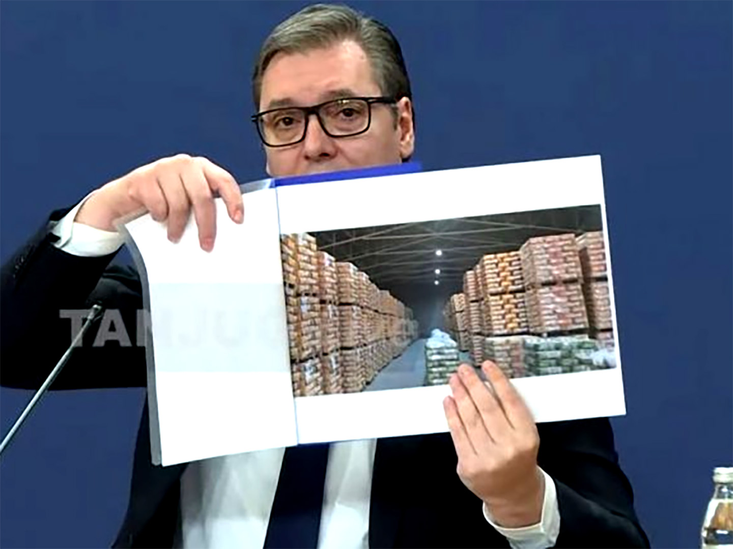 Vuçiq tregon foto të depove në Mitrovicë: Mos u merakosni, kemi bukë, misër… mjaftueshëm për 6 muaj…!
