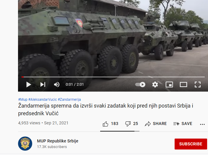 Në kanalin zyrtarë të Ministrisë së Punëve të Brendshme të Serbisë në “You Tube”, është publikuar një video në të cilën shihen radhët e gjata të ushtarëve të Serbisë.