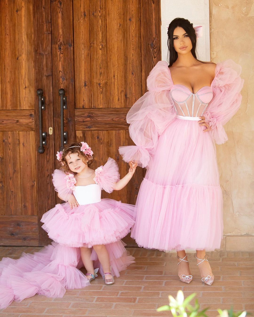 Ajo është shfaqur me një fustan rozë të stilit të Mesjetës derisa bashkë më të ka pozuar edhe vajza e saj.